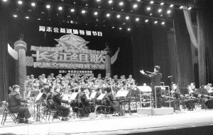 本报讯 秋风秋雨忆长征,秋高气爽颂国庆。 9月29日晚,由中共周口市委宣传部、周口市文化广电旅游局主办,周口市文化馆(原周口市群艺馆)承办的周末公益剧场,在周口人民会堂隆重举办庆祝建国67周年暨红军长征胜利80周年“长征组歌”民族交响合唱音乐会。一首首精彩曲目为现场观众带来了一场唱响主旋律、传递正能量的音乐盛宴(如图)。