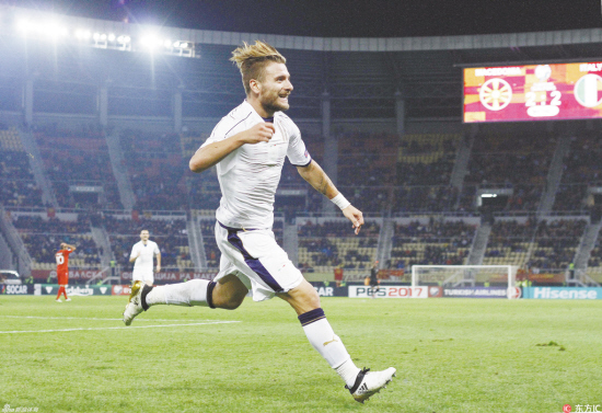 世预赛欧洲区 意大利陷入苦战 补时“绝杀”马其顿 据新华社电 世界杯足球赛欧洲区预选赛当地时间10月9日进行了D、G、I组第三轮比赛,意大利队通过补时阶段的进球以3∶2“绝杀”马其顿队,西班牙队以2∶0客场击败阿尔巴尼亚队。 在G组,意大利队与马其顿队陷入苦战,意大利队在比赛还剩下30分钟时还以1∶2落后对手。关键时刻,意大利前锋因莫比莱