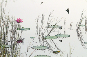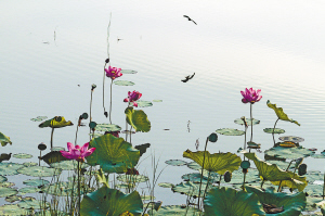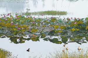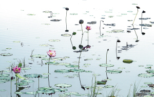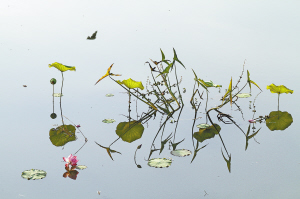 此时的荷塘,呈现出一派秋的气象。虽然荷叶已经卷曲枯萎,莲蓬也已枯黄,扭曲的荷梗穿插其间,繁华褪尽,满池清丽,却呈现出一番别样的秋韵之美。