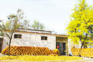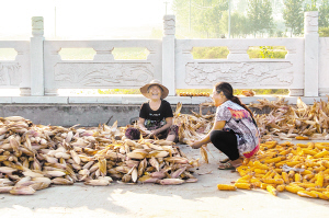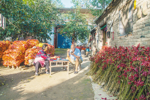 金秋时节,勤劳的农民忙着晾晒丰收的作物,火红的辣椒、金黄的玉米……形成一幅色彩斑斓的“晒秋图”。