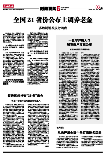 全国21省份公布上调养老金