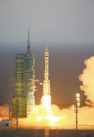 10月17日,神舟十一号载人飞船在酒泉卫星发射中心发射成功。这是搭载着神舟十一号载人飞船的长征二号F遥十一运载火箭在酒泉卫星发射中心点火升空。新华社发