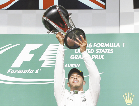 F1美国大奖赛 汉密尔顿夺冠 据新华社电 在当地时间10月23日进行的F1美国大奖赛中,汉密尔顿一举夺魁,保留着冲击车手总冠军的希望。 从杆位出发的汉密尔顿一路狂飙,拿到了自己在5年之内的第四个美国大奖赛冠军,将他和梅赛德斯车队队友罗斯伯格的积分差距缩小到26分。 这也是汉密尔顿职业生涯的第50个分站赛冠军。夺冠后他在自己的车载电台中兴