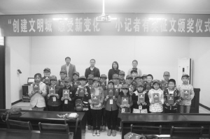 本报讯 10月22日上午,由川汇区城管局联合本报举办的“创建文明城 感受新变化”有奖征文评选结果揭晓,35名小记者喜获荣誉证书和奖品。此次有奖征文活动充分调动了青少年学生积极参与创城活动的热情,为我市创建省级文明城市营造了浓厚的舆论氛围。