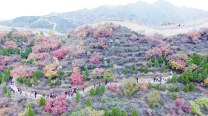 当日是二十四节气中的霜降,北京八达岭长城和八达岭国家森林公园红叶岭景区的红叶进入最佳观赏期。新华社记者 陈晔华 摄
