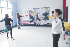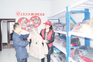 走进三义社区“群艺馆”,二楼南侧是柔力球活动室,10多名柔力球爱好者正在锻炼技能(图二),一些群众也自发加入队伍,一试身手;北侧是健身室、乒乓球室、棋牌室,多套健身设备供社区居民锻炼身体,71岁的曹宝珠、75岁的郭全祥、76岁的谢广伦几位老汉围坐在象棋桌旁激战正酣;西头是书画室,川汇区书法家正和几位书法爱好者切磋书法艺术(图一)。比起二楼的热闹,三楼的图书室、阅览室较为清净,5000多册图书免费向居民开放,市民学校、道德讲堂每周为居民讲授道德模范事迹、普及法律知识;四楼的志愿者室,接收、发放爱心衣服、物品(图三),三义社区把辖区的每一位特困人员都登记在册,定向帮扶、量身帮扶暖民心。