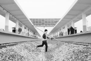 10月25日,工人闫新宇在黄土店临时过渡站测量铁轨标高。自11月1日起,北京市郊铁路S2线市内始发(终到)站由北京北站迁移至该站。