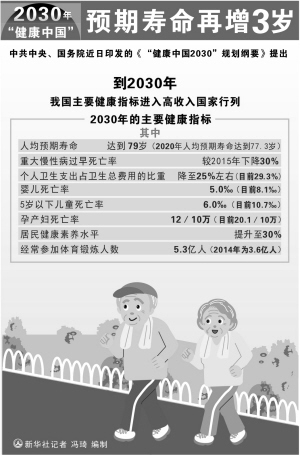 中共中央、国务院日前印发了《“健康中国2030”规划纲要》。根据这一健康中国建设的宏伟蓝图和行动纲领,2030年中国的健康指数将发生哪些变化?这些变化又将给公众的生活带来哪些影响?记者对此进行了分析和梳理。