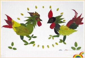 3.活动要求:制作树叶画需剪刀、双面胶和一些树叶,将树叶贴在与其颜色相对的纸上,然后,可以根据自己的构思,对树叶进行剪裁。树叶的叶脉和边缘花纹是大自然创造的美,每片叶子的边缘都是不同的,有齿轮形、圆形等,小记者在构思时,将这些花纹当做线条进行组合整理,可以制作出风景、花鸟、人物等。