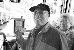 10月29日,一位老人在用北京通——养老助残卡刷卡上车。