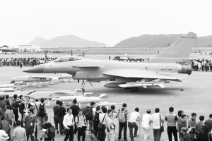 11月1日,观众在现场观看中国空军歼10B战斗机的静态展示。