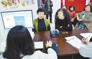 11月7日,“时间银行”的爱心医生在为社区老人义务查体。