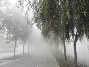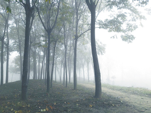 11月13日,周口市区被浓雾笼罩,建筑物和树木在雾中若隐若现,恍如仙境。王银行 摄