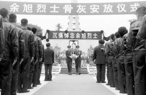 11月20日,余旭烈士骨灰安放仪式在四川省崇州市革命烈士陵园举行。余旭是我国首批歼击机女飞行员,是首位驾驶歼-10飞机飞上蓝天的女飞行员。
