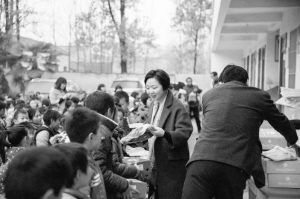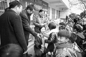 近日,省电商团工委、省电商协会一行人在市工信委工作人员的陪同下到商水县舒庄乡杜店小学捐赠了500套羽绒服和旅游鞋。图为捐赠现场。晚报记者 王凯 摄