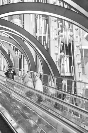 接下来我们参观了红星美凯龙集团斥巨资打造的天津爱琴海购物公园。商场内人山人海,随处可见琳琅满目的高档品牌和美轮美奂的饰品。大家纷纷拿出手机拍照留念,一步一景、一店一色,我们都被场内精心的空间设计所吸引。我们发现商场每层不但有古希腊式、欧式和现代式风格的雕塑、喷泉、水池,还有精美创意的花艺植被,仿佛就是在公园中漫步,在风景中购物。据工作人员介绍,天津爱琴海购物公园建筑面积25万平方米,是集购物、餐饮、娱乐、休闲、体验消费等综合式于一体的时尚现代化大型购物中心,开业当天,创下35.6万人次的客流量,足见爱琴海品牌力量的强大。我们乘坐具有爱琴海特色的云梯来到了世纪星真冰场,体验惊险刺激的创意滑冰。我印象最深的是这里首家一站式婚庆品牌——玫瑰里(可能到了适婚年龄的原因),从拍婚纱照到举办中西式婚礼再到吃喜宴,一站式的服务全包含在内。同行的小伙伴感叹:“太棒啦,都有一种赶紧想去结婚的冲动。”之后我们观看了天津首家巨幕4D全声影院——红星太平洋电影院,无法形容的立体式视觉和声音效果,令大家赞不绝口。