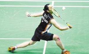 当日,在香港体育馆举行的香港公开羽毛球锦标赛女子单打决赛中,中国台北选手戴资颖以2∶0战胜印度队选手辛杜,获得冠军。新华社记者 卢炳辉 摄