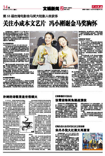 关注小成本文艺片 冯小刚谢金马奖胸怀