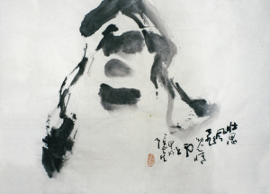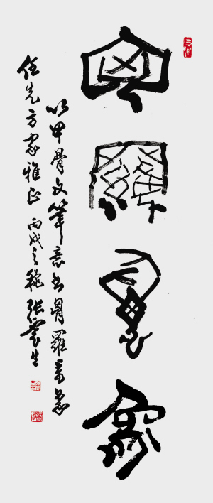 上世纪90年代的深圳本是中国“开放的前沿”,云生先生无意间闯到这个地方来了。深圳十年,是他晚年书法变革的一个转折点,形成他的一个书法高峰。他的书法像“路”、“聲”、“影”、“风”、“涛”等,都在传统基础上加上新的时代的元素,日趋鲜活。特别是他有感于深圳精神的“开荒牛”,像一幅画,形如一头耕牛在负重爬坡,无论章法创意与文字都完美无瑕。