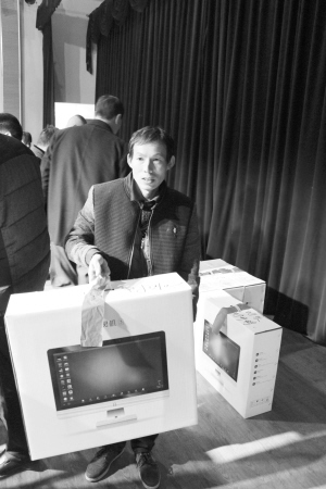 12月3日上午,淮阳县四通镇时庄行政村村民领到了非常适用于农村人群的“8宝灵机”。据介绍,“8宝灵机”是一台电脑,其最大特点就是可进行语音识别,消除了互联网技术与农民之间最大的 “技术壁垒”。农民通过“8宝灵机”,可进行网上购物、视频聊天、看电视、了解天气等,并可在网上卖自己的农产品。
