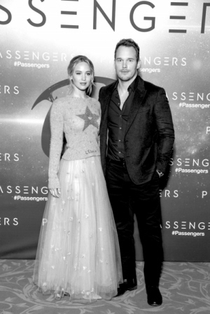 现场,詹妮弗·劳伦斯作为新晋时尚ICON女神范十足,巴黎首映礼时一席水蓝色休闲长裙亮相,又极为呼应影片太空旅行的主题;在马德里、伦敦和柏林首映礼时,劳伦斯更是展现白色休闲套装、撞色长裙等多种造型。克里斯·帕拉特则风度翩翩相伴在侧,更不时默契耳语上演“小剧场”,全程与粉丝媒体近距离接触。