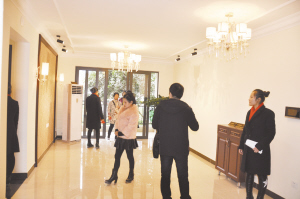 参观完样板房,市民来到园林景观区。高大的形象门、茂密的绿草、挺拔的名贵树木、用材和铺设都讲究的地坪,让人怦然心动,更让欣喜的是12000平方米人工湖水系,尽管水系还没有全部竣工,可是部分已交工,让市民参观的水景已显示出这里的大美:水面宽阔、叠形瀑布、小桥流水、休憩亭琴声悠扬、周围迎客松掩映……尽管是严冬季节,眼前却是一幅江南水乡的园林景观画卷,来参观的市民流连忘返。