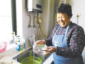12月8日上午,周口晚报记者来到商水县融辉城小区居民王翠芝家里,接了水准备做饭的王翠芝(图一)说:“近几天的水特别清,喝着还有点儿甜。”周口晚报记者问王翠芝是否知道现在喝的是丹江水,她开心地说:“哦,不知道,我说咋这么好喝,太感谢政府了,让我们喝上这么好的水。”