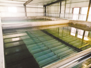 在商水水厂沉淀池(图三)旁,何炳旭介绍,该沉淀池采用的斜板装置是用优质的不锈钢材料做成的,比传统的塑料材料强很多。此外,商水水厂又增加了活性炭过滤装置,使水味更佳、口感更好。