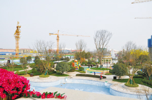 高大气派的形象门、茂密的绿草、挺拔的名贵树木、用材和铺设都讲究的地坪……让人怦然心动。更让人欣喜的是12000平方米人工湖水系,水面宽阔,叠形瀑布、小桥流水、休憩亭和喷泉,处处成景。尽管是严冬季节,眼前却是一幅江南水乡的园林夜景图。“太美了,这真是心中理想的家园。”市民李先生一家3口边参观游览、边拍照留念,仿佛忘记了寒冷。