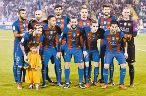 巴塞罗那队13日在多哈与沙特阿尔阿赫利队进行了一场友谊赛,梅西一传一射帮助球队5∶3获胜。