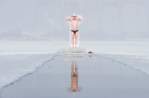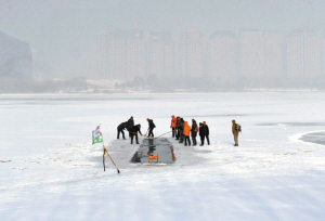 沈阳冬泳爱好者零下19℃凿冰畅游