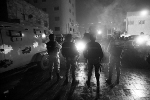 12月18日,在约旦南部城市卡拉克,警察在枪击现场附近警戒。