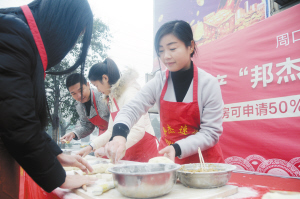 选手们专心致志包饺子