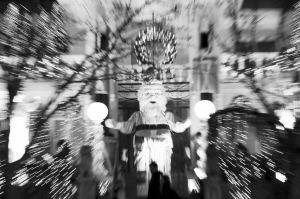 这是12月21日拍摄的美国纽约布鲁克林“圣诞村”的圣诞灯饰。