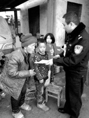 12月24日上午,商水县户籍警郭苍辉来到该县练集镇梁楼村,为留守儿童妞妞和家辉送去补录的户口本和御寒棉衣,让他们感受到社会的温暖。