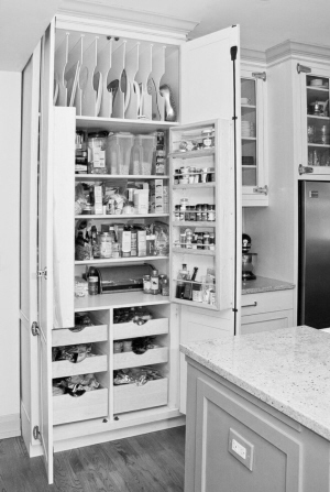 以厨房和浴室为例,抽屉里增加柜内分隔,就可以很好地将刀叉筷子、化妆用品进行分类,这样看起来一目了然,可以迅速找到想要的物品。同时,每个小物品都有其“归宿”,因此,每次使用完之后也会自觉地将物品归位,这样就更能长久保持空间整洁,不会一下子又归于凌乱。