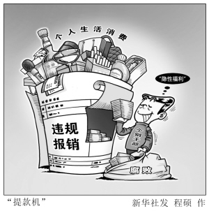 “报销腐败”是一个长期存在的突出腐败现象。有的领导干部报销内容无所不包,生活几乎“零成本”。有的落马干部甚至以餐饮、烟酒的名义,把行贿“黑金”入账报销。 新华社发
