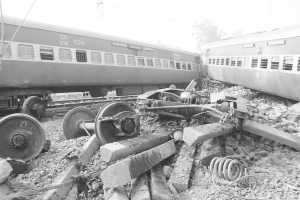 这是12月28日在印度北方邦坎普尔地区拍摄的火车脱轨事故现场。