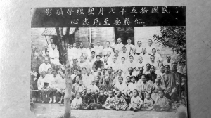 照片上题有“民国十五年七月圣经学摄影”、“你务要至死忠心”等字样。照片附有1965年有关部门的解密档案资料,由此确定这张照片是周口天主教堂人员的合影。据了解,1895年,天主教传入周口,并在北寨前太平街建立周口天主教堂,属开封教区领导。堂下设15个分堂,涉及商水、淮阳、沈丘三县,至新中国成立前有教徒1200余人。