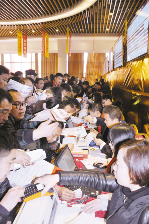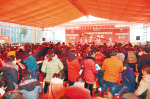当日上午,雾霾锁城。可是,雾霾锁不住众多投资者置业的脚步,严寒降低不了商业经营者创富的热情。一大早,数以千计意向购买周口华耀城F区商铺的客户从四面八方向周口华耀城招商中心赶来,8时许,周口华耀城招商中心门前广场已汇聚大量客户,偌大的广场看上去明显拥挤。在周口华耀城工作人员的组织下,大家筛选意向铺位、交谈F区建材家居市场的前景、品尝早点,现场气氛热烈而喜庆。