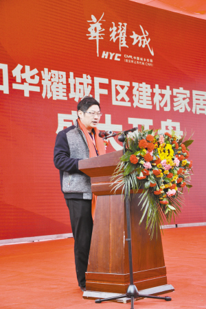 10时许,开盘仪式开始。周口华耀城副总经理林建新首先致辞。他说,华耀城集团是中国规划、建设、运营大型综合商贸物流中心的领跑者,作为华耀城集团标杆项目的周口华耀城,在市委、市政府的大力支持下,在各职能部门通力配合和帮助下,短短3年时间,一幅商贸物流的雄伟画卷已经呈现在市民面前。目前,周口华耀城竣工及在建面积约100万平方米,完成投资额约50亿元, B区、C区入驻商户2300多家,每天收发货车辆200余台,日客流量数万人次,客流涌动,市场繁华已现,大势已成。同时,美食街、购物广场、仓储物流园、电动公交车站等各类配套设施日渐完善,可为商户提供便利的经营环境,助力商户做大做强。