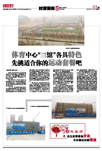 周口市体育局相关负责人说,目前市体育中心“三馆”建设是2016年中心城区十件民生实事之一。老年人健身馆建成后,将设老年人健身房、台球室、棋牌室、诗书画室、摄影室、阅览室、体检室、培训室等功能性用房,会很适合老年人健身操舞、太极拳剑、乒乓球、羽毛球、网球、气排球等活动的开展。重竞技训练馆工程建成后,将用于古典式摔跤、自由式摔跤、柔道、跆拳道、拳击、举重等项目的青少年训练及各单项比赛的使用。而游泳馆功能定位可满足地区性比赛及青少年训练和周口市全民健身运动的要求,并可兼顾平时大众休闲娱乐、洗浴和餐饮茶艺等经营性要求。