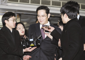 1月18日,在韩国首尔,三星电子副会长李在镕进入首尔中央地方法院前接受媒体采访。