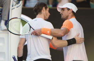 1月22日,穆雷(左)与米沙·兹维列夫在赛后相互致意。