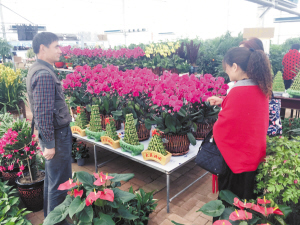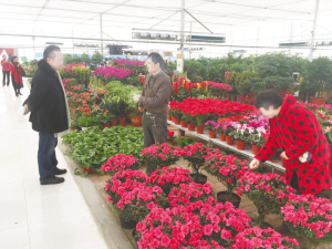 本报讯 春节临近,市民争相购买花卉,在装扮家庭环境的同时,也增加了许多节日气氛。昨日下午,周口晚报记者在商水县S312省道旁的豫东花卉大世界里看到,许多市民正在精心挑选花卉。