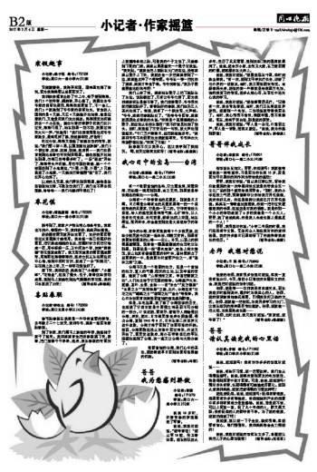 哥哥,我很想对你说:“小学二年级的时候,我们还没有作文课,无法向众人表达我对你的爱和敬佩,我的许多篇日记里却留下了你滋养着我成长的经历。”(辅导老师:张满)