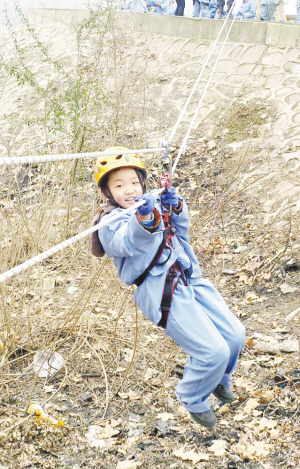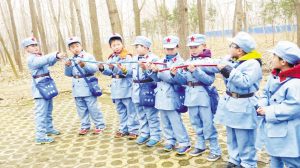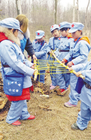 当日上午8时许,小记者在周口国防教育园集合,他们身穿“红军服”,头戴“红军帽”,俨然成了一队“小红军”。“誓师大会”之后,他们吹响军号,沿着设定的“长征路线”,威武雄壮地行进着。大约2.5公里的行进途中,“小红军”精神抖擞、士气高昂,通过路口时听从指挥,遇到困难时互相帮助,树林、草丛、“沼泽地”……到处留下他们艰苦行军的身影。到达周口文昌生态园之后,一系列的模拟锻炼项目呈现在“小红军”面前。一天时间里,从穿越“封锁线”、索道横渡、战地救援到最后的“胜利会师”,小记者表现出特有的兴奋与激情。