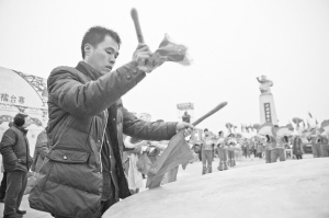 2月7日,民间艺人在河南宝丰县马街书会会场表演。