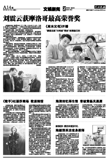 本报综合消息 摩洛哥当地2月11日晚(北京时间12日晨),在第23届卡萨布兰卡国际书展上,中国著名作家刘震云被摩洛哥文化部授予“国家文化最高荣誉奖(上图),以表彰他的作品在摩洛哥和阿拉伯世界产生的巨大影响,这是中国作家第一次获得该奖项。