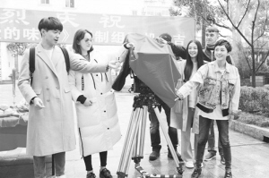 郭采洁(右一)现身《亲·爱的味道》开机现场